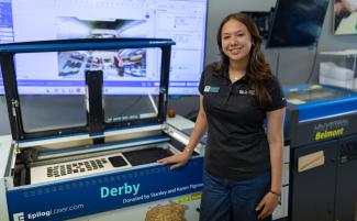 The Epilog Laser within the lab can perform a variety of unique tasks in the engraving and cutting field. This laser cutter can precisely cut and engrave wood, acrylic, and a variety of other materials at the quickest speeds in the lab with incredible detail. This laser is recommended for large cuts and precise, deep engravings.